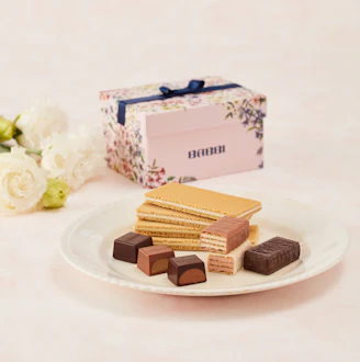 定番ウエハース『グランワッフェリーニ』に加え、季節限定チョコレートウエハース『バッビーノ』、クリームをチョコレートで包んだ『クボーン』を詰め合わせました。