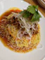のどごしの良いツルツルの中太麺に、旨辛特製蒸し鶏、香草の効いたよだれ鶏ソースがひんやり冷麺に良く絡みます。