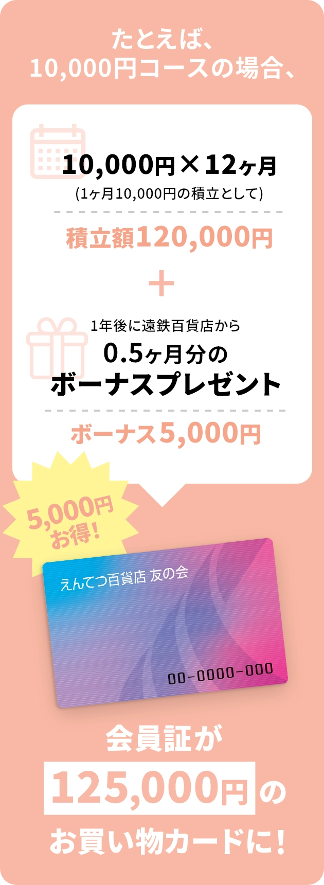 欲しかったあの商品に手が届く、遠鉄百貨店友の会とは、入会後、毎月会費をお積み立て頂くと、