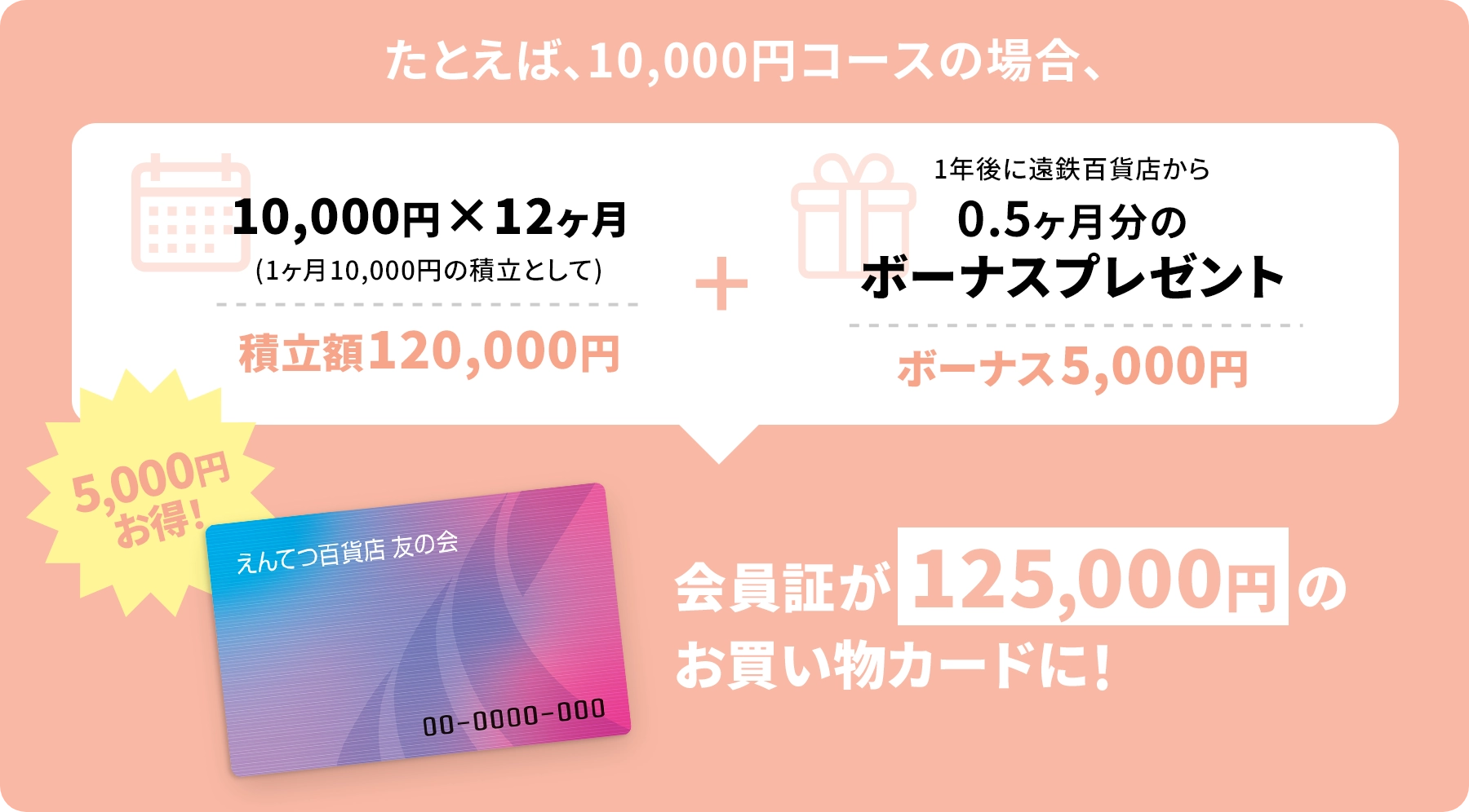 欲しかったあの商品に手が届く、遠鉄百貨店友の会とは、入会後、毎月会費をお積み立て頂くと、
